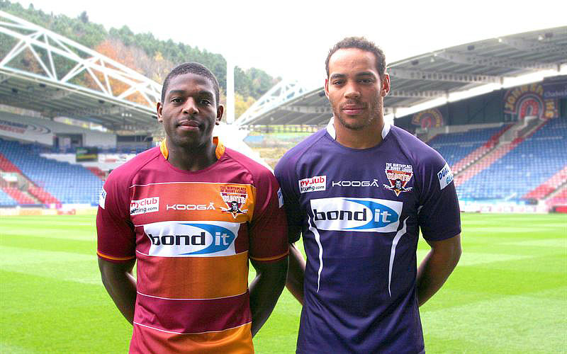 Backed by Bond It. As part of a renewed sponsorship deal with the Huddersfield Giants, the Bond It logo will once again enjoy pride of place on the teams’ 2015 home and alternative shirts as worn by winger, Jermaine McGillvary (left) and centre and England International, Leroy Cudjoe (right).