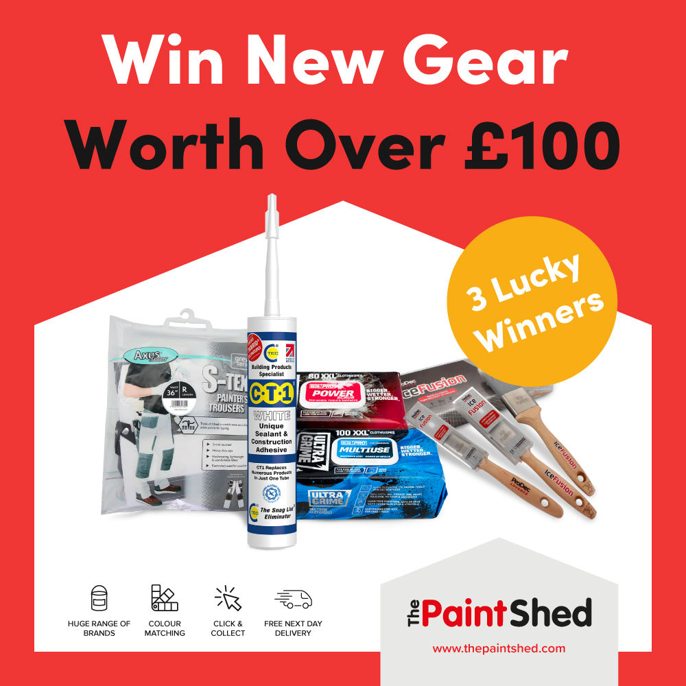 Entrants must be aged 18 years or over. Entrants must be employed/self-employed within the Painting and Decorating industry. The competition will close at 23:59 UK time on 31st January 2024. Please ensure that you put a valid email address on the entry form. The winners will be picked at random. The winners will be contacted by email. If a winner does not respond to the email within 48 hours, the prize will be redrawn. The prize is one (1) of three (3) The Paint Shed bundles, each containing one (1) x Axus Grey Series S-Tex Painters Trousers, two (2) x CT-1 Sealant and Adhesive, two (2) x Ultragrime Pro XXL Power Scrub Wipes, two (2) x Ultragrime Pro XXL Multiuse Wipes, one (1) x Prodec Ice Fusion Brush Set of 3 Painting and Decorating News (PDS Promotions Ltd) can not be held responsible for the performance of the prize. Entries are limited to one per person. Your details will be shared with The Paint Shed Limited if you are a selected winner OR you have agreed for your details to be shared when filling in the entry form. Your email details will not be used by Painting and Decorating News (PDS Promotions Ltd) for any other purpose, unless you subscribe to our email newsletter. You must be a UK resident to enter. Under UK law, the name of the winner will be available upon request. The promoters of the competition are Painting and Decorating News (PDS Promotions Ltd) and The Paint Shed Limited, contact details available on request. The Paint Shed Limited is solely responsible for ensuring the fulfilment of the prize to the winner. The decision of the promoters on all of the points above will be final and no correspondence will be considered