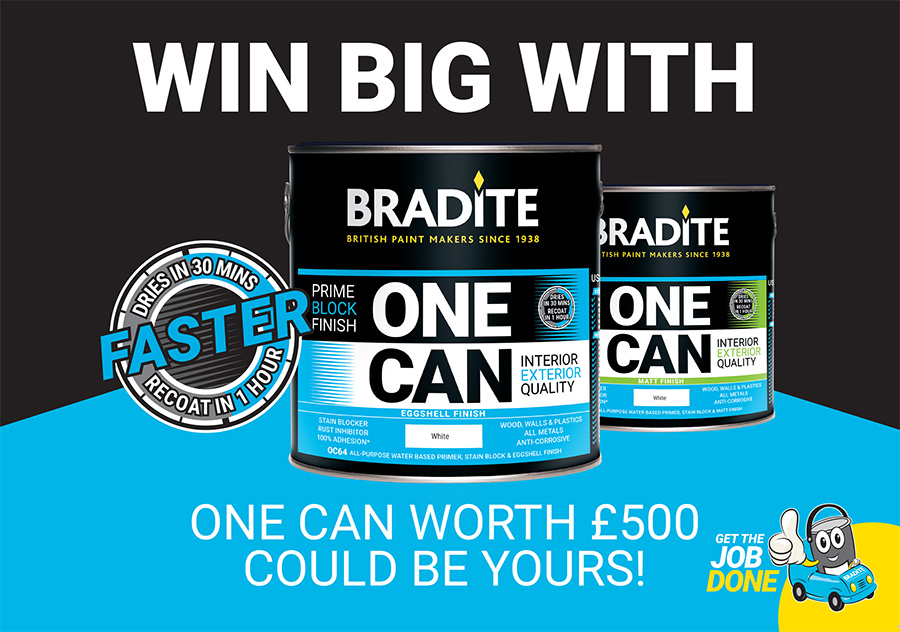 The first entry picked at random when the competition closes will win the top prize. We’ll also pick two runners up to win £250 to spend on Bradite One Can.
