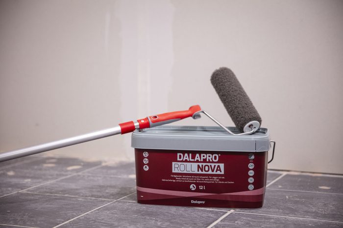 Roller applied coverings such as Dalapro Roll Nova come in a 12-litre resealable tub, which means you can load the product straight onto your roller from the tub. Then, when you have finished, reseal the tub and use any remaining product at your next job.