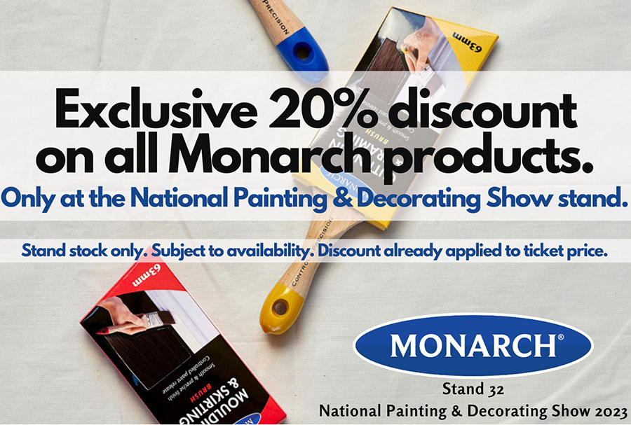 Monarch Painting UK are be exhibiting at The National Painting and Decorating for the first time ever. On Stand 32 you’ll be able to view the full collection of brushes and roller sleeves and the company’s popular Detail & Finishing Brush Set.