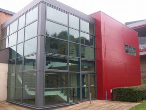 Water based Cladit from Bradite was specified by contractors DSW Holding Limited for all of the recoating work. The product is a water thinned polyurethane acrylic finish that according to Dave Woods of DSW offered the best solution in terms of long lasting protection and easy maintenance. “Having used the product for many projects, we know the ability of the Cladit product as far as the quality of application and performance is concerned” he explains. Also the range of colours was an important aspect as the colours, grey for the windows and red for the cladding itself, were selected to fulfil one of the aims for the redevelopment of the campus to rejuvenate the visual appearance of the campus. Bradite’s facility to provide the desired colour scheme was instrumental in the specification process.
