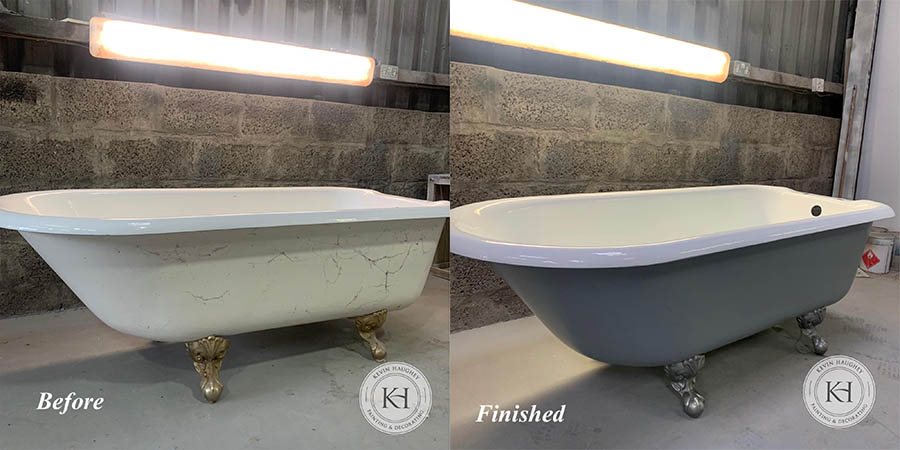 Kevin was also asked to repaint and save an old Victorian style bath, 150 years old, it hadn’t been used in 20 years with roughly a two-inch seal of grime.
