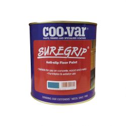 Suregrip is a single pack, ready mixed aggregated floor paint which is suitable for interior and exterior use. It can be used for many applications including ramps, steps, paths/walkways, around machinery, car pits or anywhere else that slipping is a possibility. Simple to apply Coo-Var Suregrip comes in 1L, 2.5L and 5L.