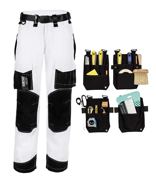 Says Dexters “Painting and decorating professionals need to be able to switch between different jobs quickly and their workwear should be able to adapt to match. You should have the right tools to hand all of the time, rather than stuffed at the bottom of a toolbox, so we created an innovative pocket system for our painters trouser that simply clips pockets on and off.