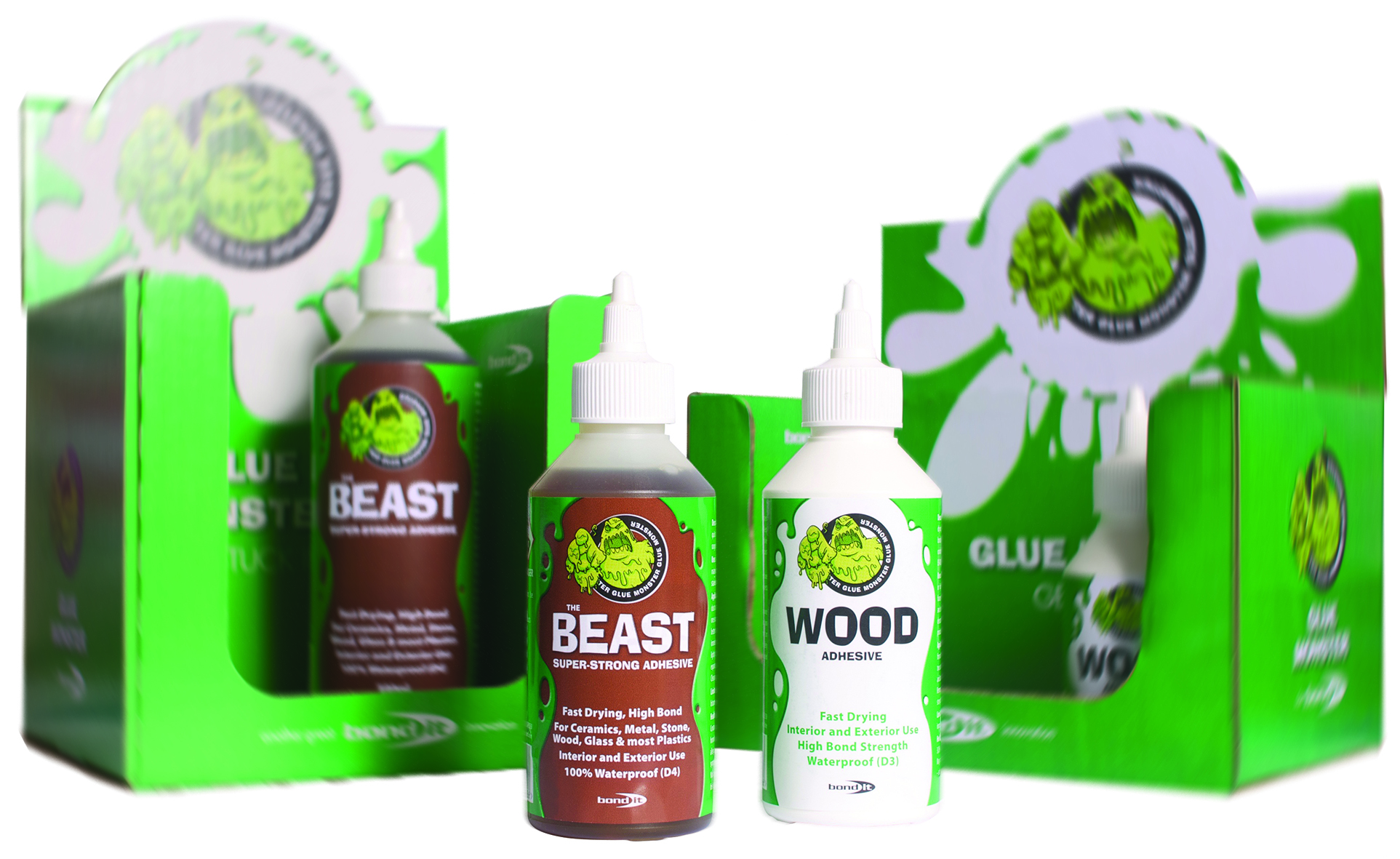 Manufacturer of sealants, adhesives and building chemicals, Bond It has introduced two new adhesive products . under the Glue Monster brand.Glue Monster Wood Adhesive is a one part, ready to use PVA timber adhesive with an EN 204 D3 rating.