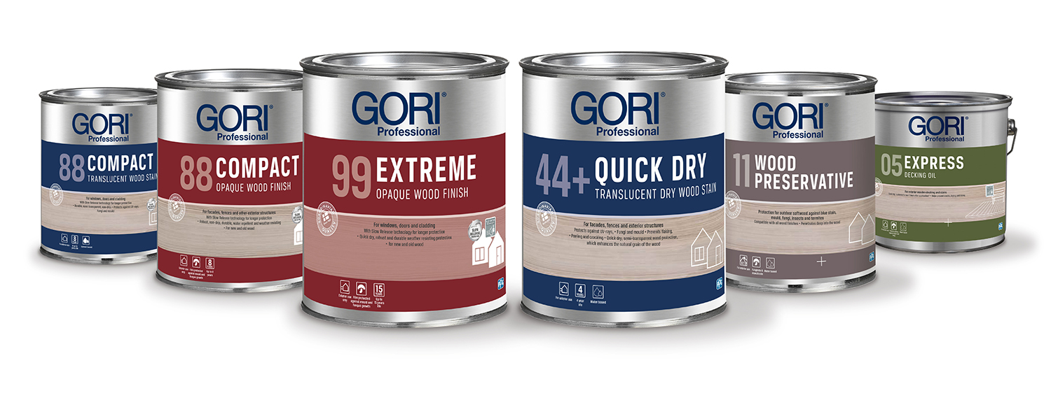 - GORI 88 Compact Wood Stain – Semi-transparent wood protection for use on windows, doors and cladding, resisting UV-rays, fungi and mould with Slow Release technology and up to eight years’ life.