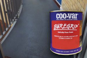 Coo-Var Anti-Slip Floor Paint is a ready mixed, single pack aggregated floor paint which provides a rough anti-slip finish which helps prevent slips and falls.